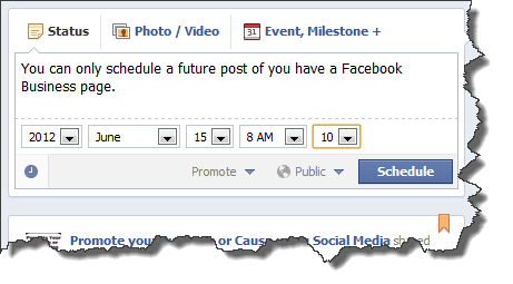 This is the latest feature offered by Facebook and only available if you have a Business Fan Page. Profiles do not have the ability to schedule a post. With this feature you can schedule a post for the entire week or even days and weeks out. This makes it easier to manage your social media and get on to running your business.