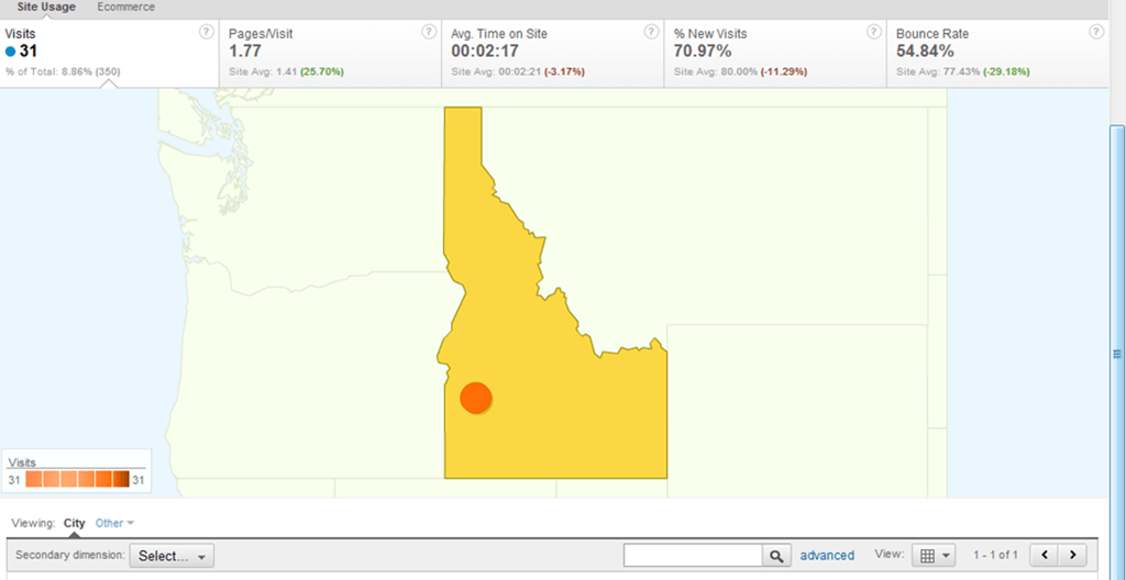 The Bounce Rate is the percentage of visitors that hit a single-page and then bounce from your site. If you have 1000 visitors on your site and 200 visit other pages on your site besides the home page, your Bounce Rate would be 80 percent. That’s because 800 of those visitors hit just your home page and then bounced.
