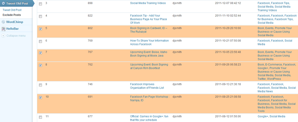 I came across some really cool social media plugins while I prepped for a past workshop. It is a plugin that automatically tweets out an old WordPress blog post. Tweet Old Post connects to your Twitter account and then randomly sends out tweets linking to your old post. It does this on a schedule you set-up once you install and active the plugin. You can choose to add just the title or title and body. Plus you can add #hashtags and control how new or old the post is that you want tweeted.